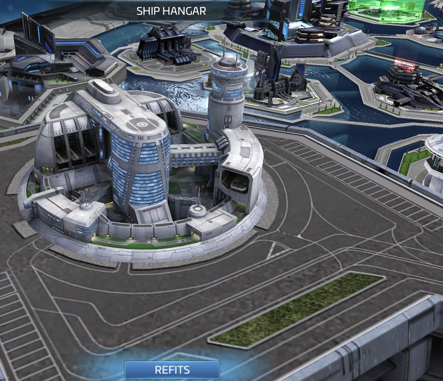 • Ship Hangar: Tap the “Refits” button on top or open the building and select “Refits.”