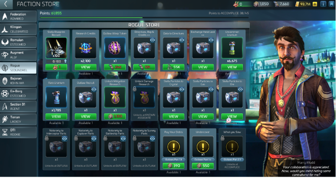 You can gain Rogue Reputation through Outlaw missions, Rogue-related events, or by purchasing specific packs available in the Outlaw Faction Store. Building reputation increases access to exclusive Outlaw technology and research tied to Eclipse space.