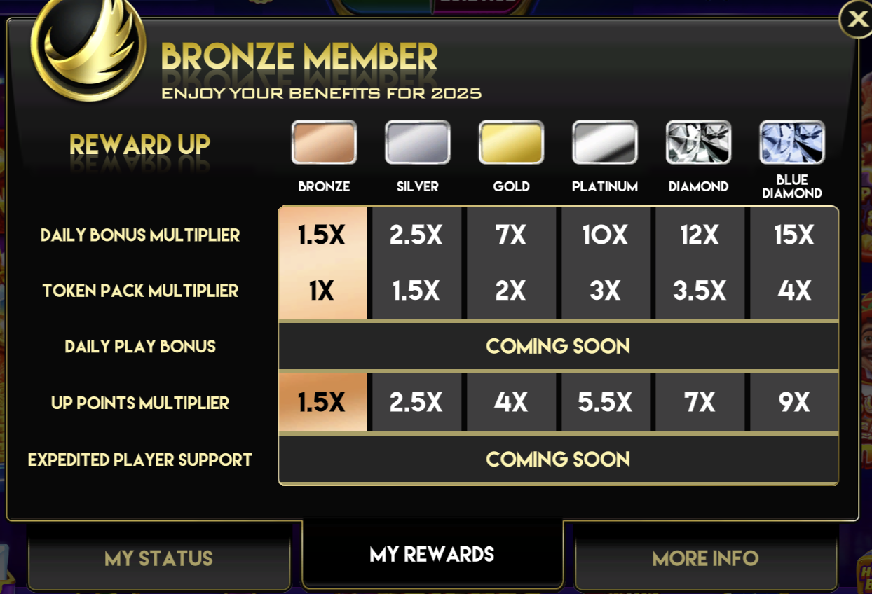 The Loyalty Program is our way of saying thank you for being a valued player. The more you play and engage, the more rewards you unlock, from boosted bonuses to exclusive perks. Keep an eye out for upcoming features like Daily Play Bonuses and Expedited Player Support, designed to enhance your experience even further.